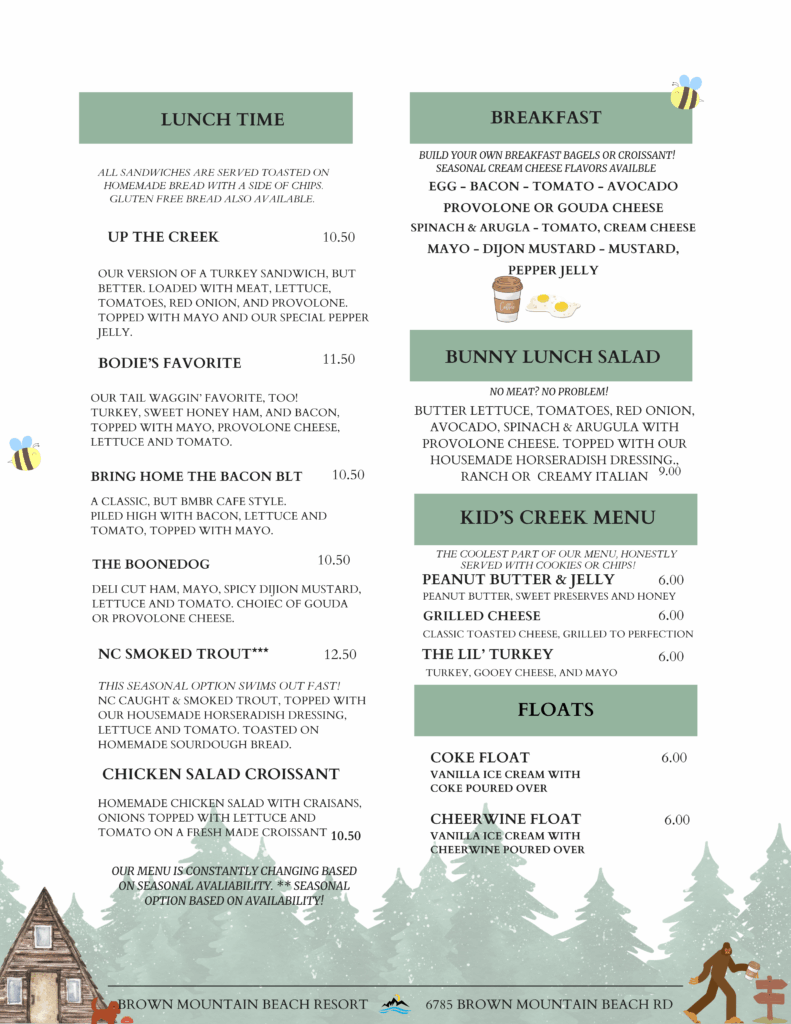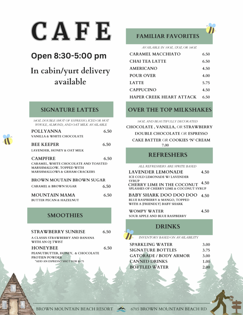 **Below is a sneak peak of our menu from our cafe. Looking for vegan or gluten free options, there are options available on site as well.